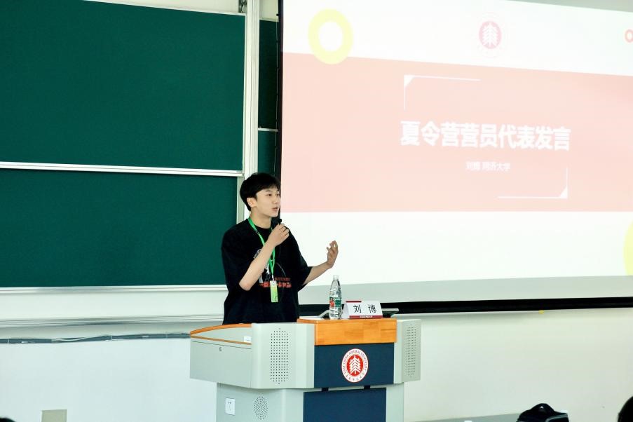随后,来自同济大学的刘博同学作为本次夏令营优秀营员代表发言,他结合自己学科背景与同学们讲述了对华东师大的认识和向往,也分享了对未来研究生生活的计划与期望。发言结束后全体营员合影留念,记录下这为梦想起航的一刻。