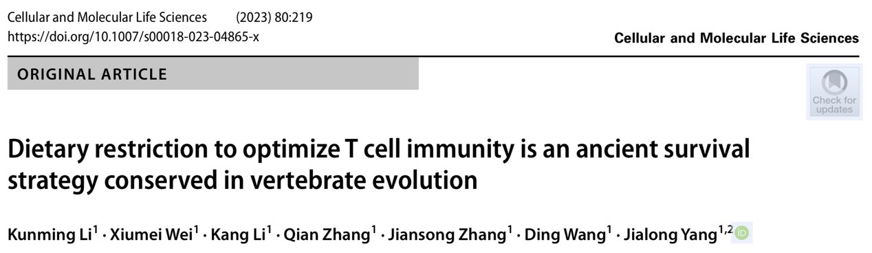 近日,华东师范大学生命科学学院杨嘉龙团队在国际权威期刊Cellular and Molecular Life Sciences上发表了题为Dietary restriction to optimize T cell immunity is an ancient survival strategy conserved in vertebrate evolution的研究论文,揭示了饥饿双向调控鱼类T细胞免疫的分子机制。