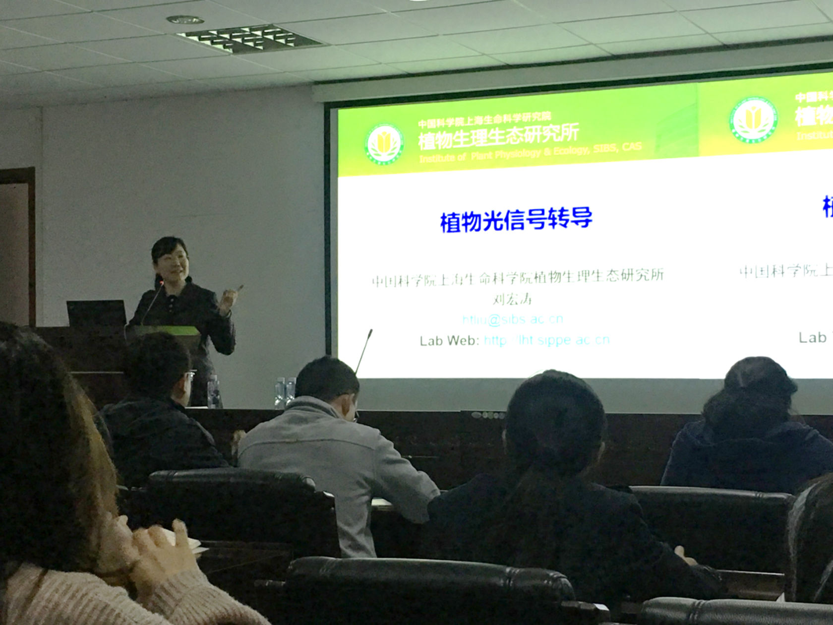 刘宏涛研究员近年来在植物光信号转导研究方面取得了一系列突破,主要研究成果发表在Science, Nature系列, Cell系列, The Plant Cell, Cell Research等国际主流学术期刊上,并获得2018年国家杰出青年基金,她的研究工作在植物光信号转导领域有着重要影响。此次讲座刘老师系统全面的介绍了蓝光、紫外光和红光信号通路的发现发展历程以及这三条光信号通路调节植物生长发育的作用机制。讲座中,刘老师着重介绍了其本人及研究团队鉴定蓝光信号途径中重要转录因子CIB1的发现过程及其在调控植物光周期开花中的作用机制,同时重点介绍了光信号途径与环境因子的协同作用机制。
