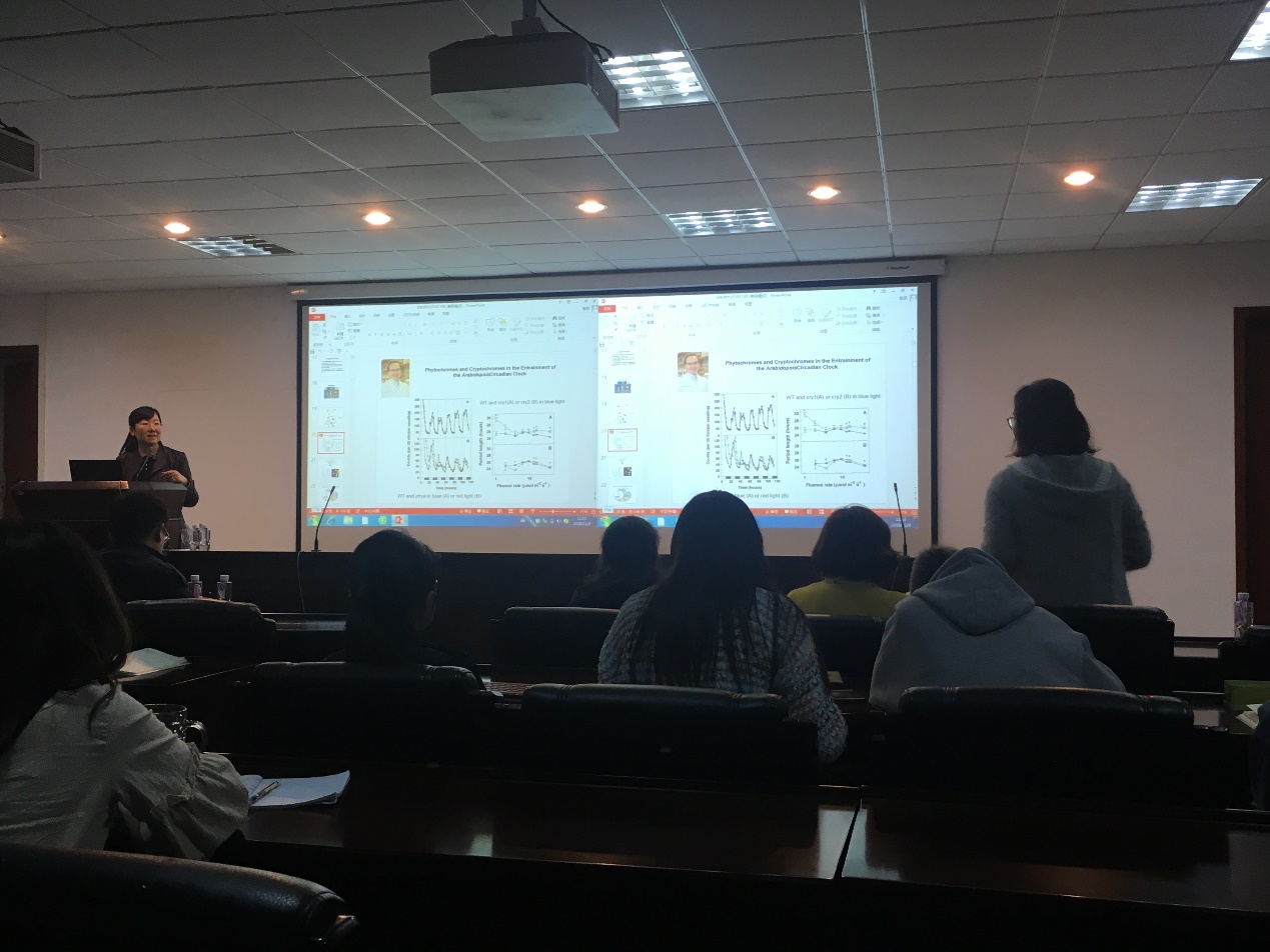 刘宏涛研究员用深入浅出,富有亲和力的语言,和一个个发人深省的科研小故事,将报告内容逻辑缜密地联系在一起,让在座师生对于植物光信号转导的作用机制有了更深入的了解。她结合自身及其带领团队的科研经历,与大家分享了科研过程中的趣事,鼓励同学们做科研一定要坚持不懈,做好时间管理。刘宏涛敏锐的科研触觉,以及她对科研事业的热爱与执着,感染着在场的每一个人。报告结束后她与在场师生们进行了热烈讨论。这次讲座不仅学习了专业知识,更启发了与会老师和同学对于科研的深入思考。