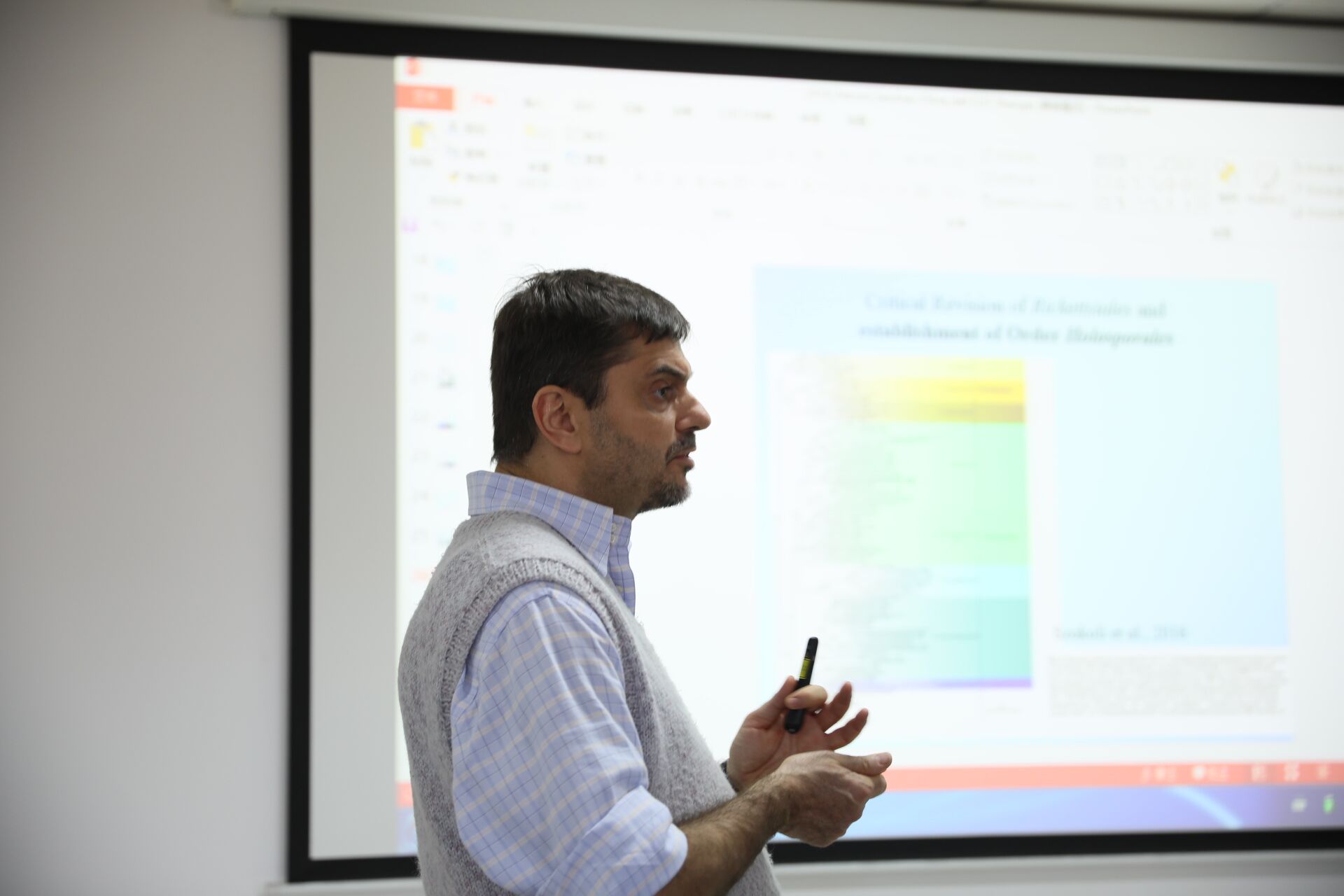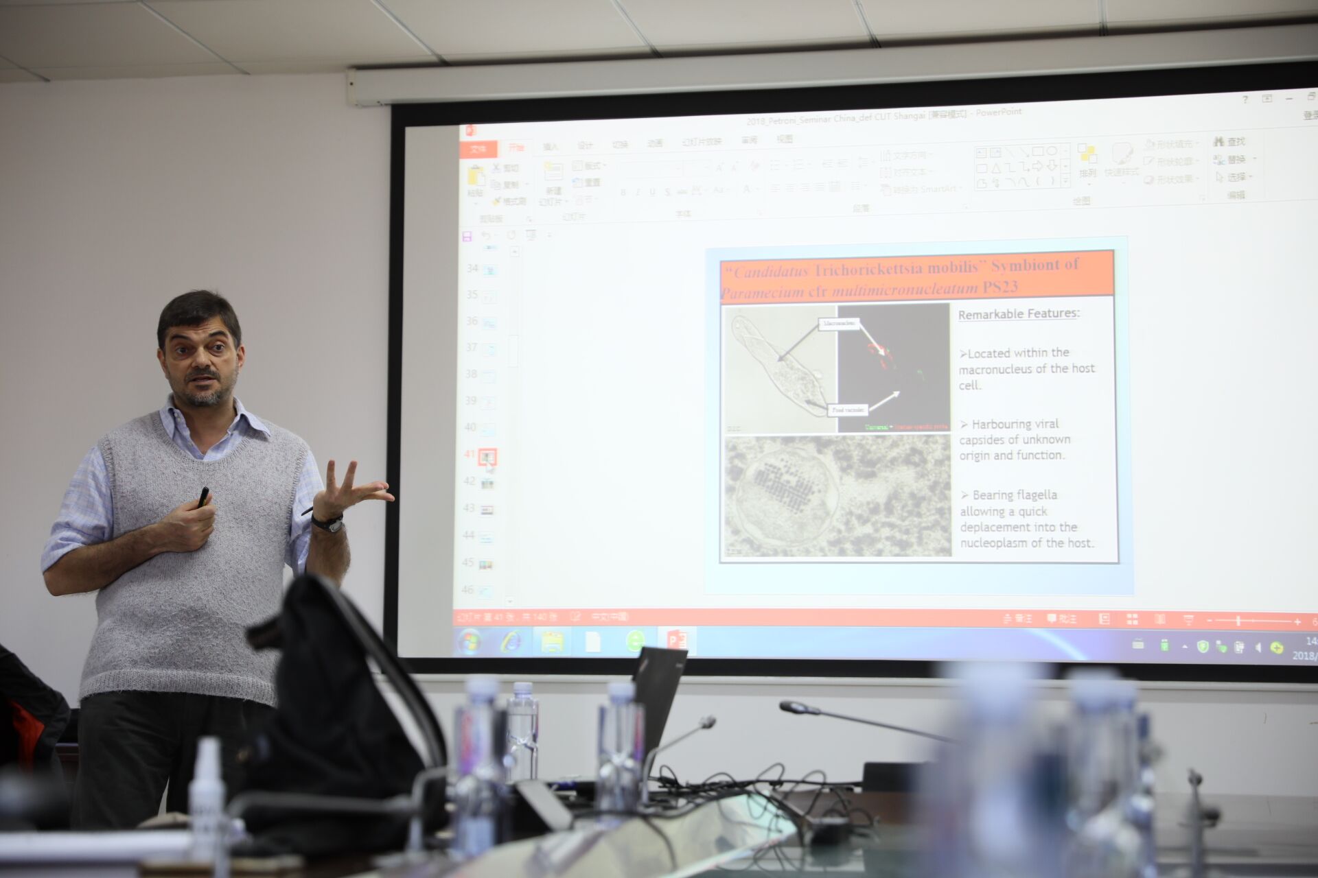2018年11月29日下午,意大利比萨大学动物学正教授Giulio Petroni应生命科学学院动物学科范鑫鹏副研究员的邀请,来我院进行学术交流,并作了题为“Biodiversity of Bacterial Symbionts of Ciliates: state of the art and future trends”的专题讲座,受到了师生们的热烈欢迎。
