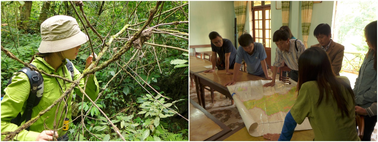 团队骨干舒蕾博士在越南境内调查                考察小组在越南河江省与当地领导商讨考察路线