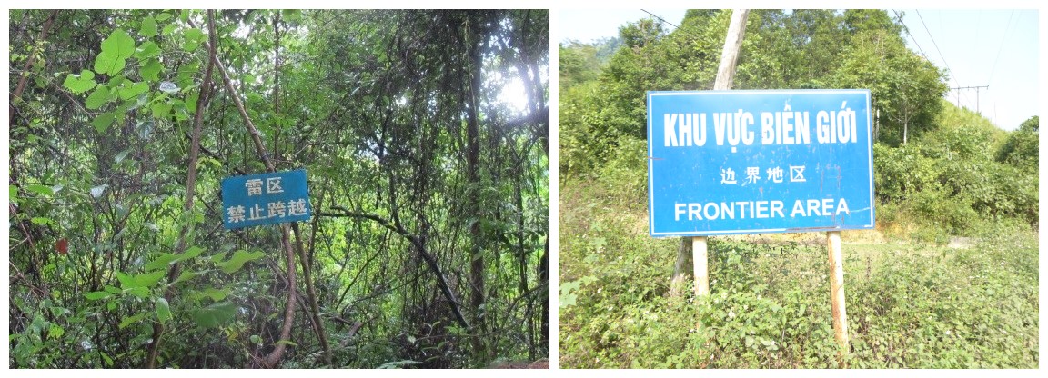 我国广西境内的雷区警示                                        越南境内的边界警示