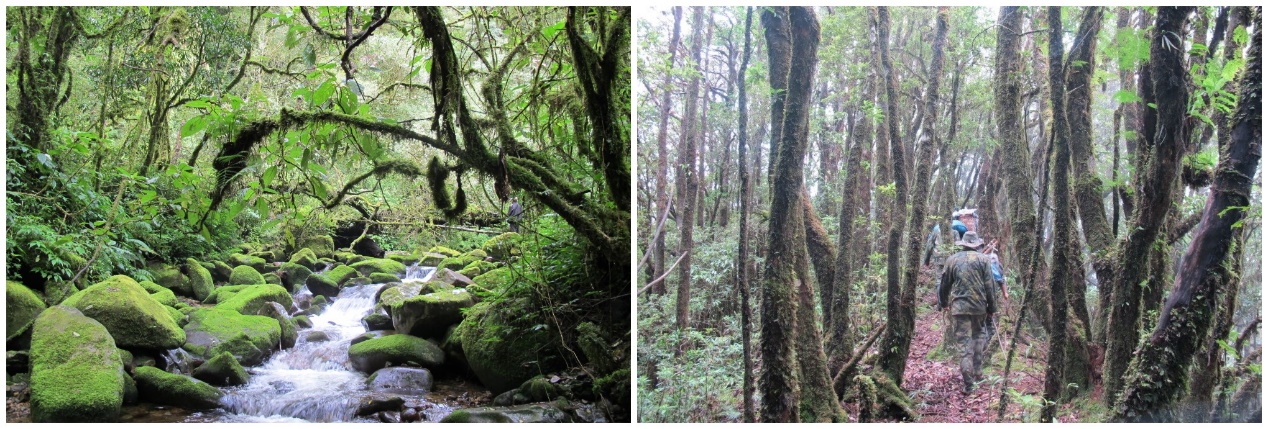 我国境内的原始森林                            考察人员穿越高山苔藓林