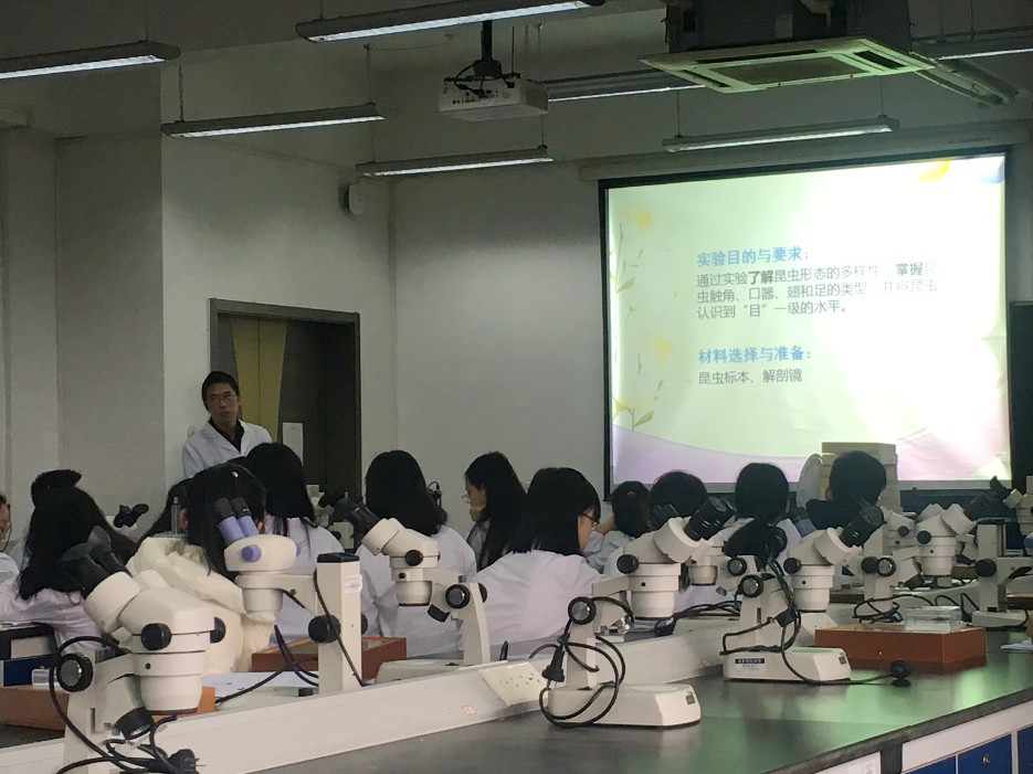 2018年12月20日下午1:00,由何祝清老师主讲的《动物分类—昆虫分类》教学公开课在华东师范大学闵行校区实验B楼405实验室顺利举行。生命科学学院副院长江文正教授、赵云龙教授等教学委员会老师以及部分青年教师参加了课堂旁听。