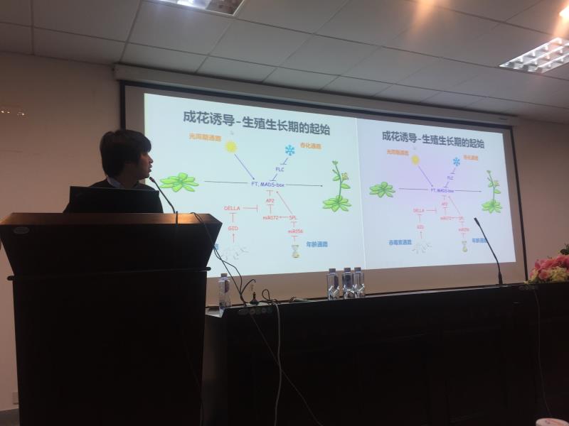 本次报告中王佳伟研究员为大家揭示了植物小分子RNA与时序发育间的密切关系。报告围绕植物和动物发育的不同、植物发育的时序性、一年生和多年生植物间的发育调控等逐渐展开。整个讲座由浅入深,为在座的各位老师和同学详细剖析了植物小分子RNA在植物时序发育过程中的重要功能,尤其是当前的研究热点miR156在年龄发育调控中的作用。