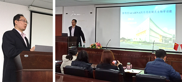 2020年12月1日,南方科技大学生命科学学院郭红卫教授在生命科学学院534报告厅为生命科学学院师生做了题为“植物22-nt siRNA的作用机制及生物学功能”的学术报告。本次报告由翁杰敏院长主持,我院植物学科许玲教授、李小方教授、赵琼研究员、李超研究员、晏军研究员、姜伊娜研究员、孙越副教授等老师和学生都早早来到现场,报告还吸引了来自上海交大的数位相关领域老师的积极参与。