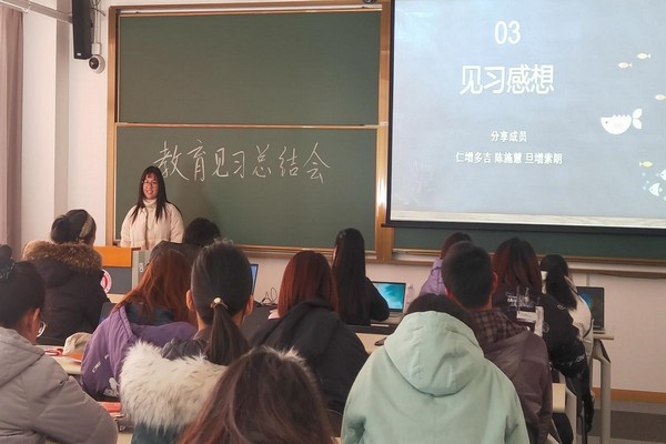 市西中学见习小组的成员仁增多吉、旦增索朗和陈施慧同学分别发表了他们的见习感想。仁增多吉同学表示,他十分感谢金老师的认真指导。通过本次见习,他的语言表达能力有所提高,自信心也不断增强。提到以“模拟教资面试”为主题的见习活动时,仁增多吉认为这是具有挑战性的任务,他为每位小组成员的优秀表现感到敬佩。“感谢老师这么认真指导我们……我也对教师职业更加尊重”;“通过见习我感觉我对成为一名高中生物教师更进一步……”;“感谢您在见习中给予我们许多干货……我对将来的职业生涯充满期待,对教师职业的工作更为清晰”……同学们的每一句见习感言都流露着感恩和感动。
