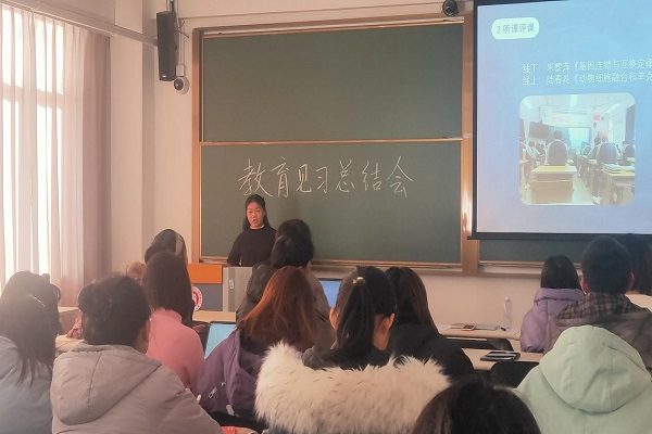 2021年1月8日下午1点,在第四教学楼203教室,生命科学学院召开了2018级师范生教育见习总结会。本次会议由教育见习大组长武雪主持,教育见习任课教师栾瑞红老师出席了本次总结会。