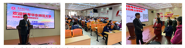 4月17日下午,江文正等一行与大同二中王丽校长、马祥副校长针对师范生培养方面进行了交流,两位领导为师范生培养提出了一些建设性的建议。随后,江文正教授为大同二中的高一、高二的同学们开展了一场讲座,详细介绍了华东师范大学的办学方针、学科门类、人才培养及办学特色,并就大学期间的学习、职业规划等与同学们进行了交流。在大同二中高一、高二和高三家长的宣讲会上,江文正老师从我校的优势、特色、人才培养、学生的大学生活等方面向学生家长们做了精彩的报告,使学生家长们更加清晰地了解了华东师范大学的办学特色和办学优势。