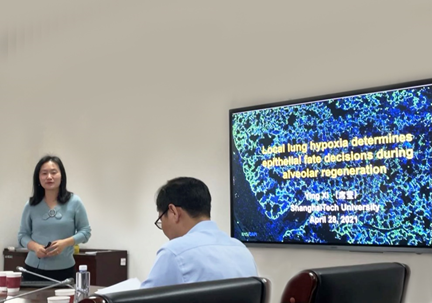 4月28日上午9时30分,上海科技大学生命科学与技术学院席莹研究员应邀在生命科学学院534小会议室开展题为《Local lung hypoxia determines epithelial fate decisions during alveolar regeneration》的学术报告,生命科学学院罗剑教授主持本场报告。学院卢伟强副研究员、金蕴韵副研究员以及20余名研究生出席了本次报告。