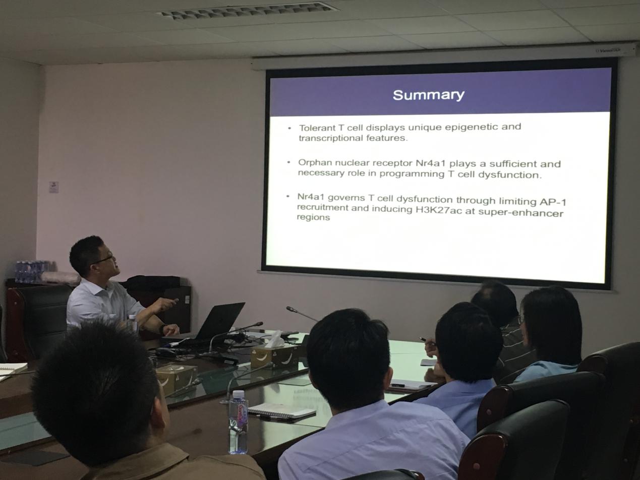 2019年4月25日,陆军军医大学西南医院全军临床病理学研究所刘新东教授在生命科学学院534小会议室为我院师生带来题为“Genome-wide analysis identifies NR4A1 as a key mediator of T cell dysfunction”的精彩学术报告,报告由赖玉平教授主持。