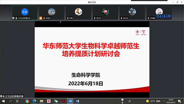 为切实提高我校师范生教学实践能力,进一步提升师范生培养质量,学校教务处于近期启动了“华东师范大学卓越师范生培养提质计划”的申报和遴选工作。该项目旨在通过“创课实验室”的形式,培养师范生课程设计与开发的能力,深化对教学理念的理解,坚定教育理想,涵养师德匠心。2022年6月18日,生命科学学院近四十名参与师范生课程教学的教师们利用周末时间在线上参加了“卓越师范生培养提质计划”的动员会并参与研讨。