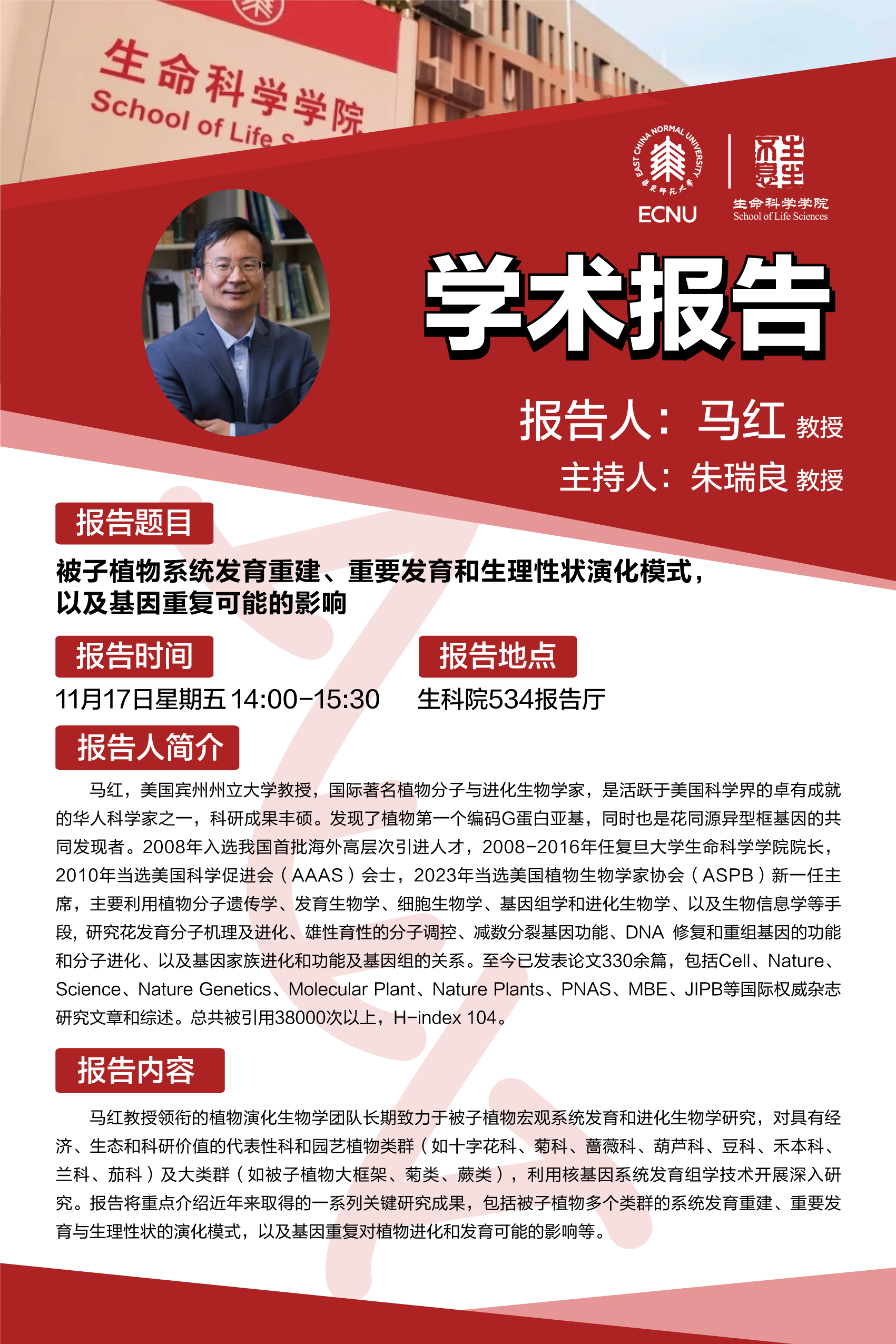 马红教授领衔的植物演化生物学团队长期致力于被子植物宏观系统发育和进化生物学研究,对具有经济、生态和科研价值的代表性科和园艺植物类群(如十字花科、菊科、蔷薇科、葫芦科、豆科、禾本科、兰科、茄科)及大类群(如被子植物大框架、菊类、蕨类),利用核基因系统发育组学技术开展深入研究。报告将重点介绍近年来取得的一系列关键研究成果,包括被子植物多个类群的系统发育重建、重要发育与生理性状的演化模式,以及基因重复对植物进化和发育可能的影响等。