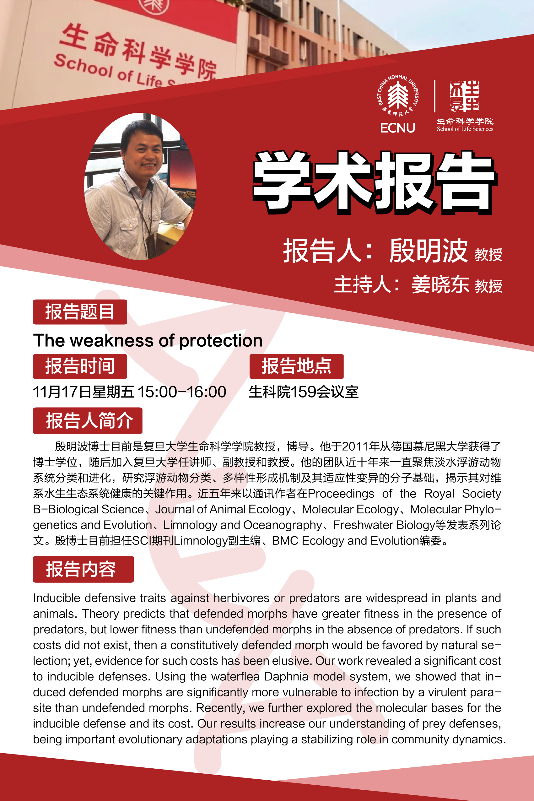 报告地点:生科院159会议室