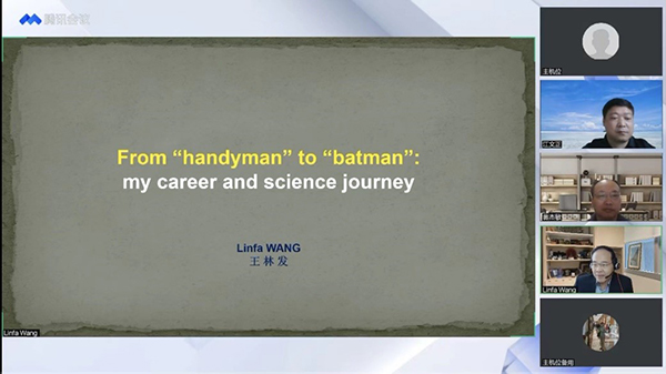 2022年9月12日下午,华东师范大学杰出校友、澳大利亚技术科学与工程院院士、美国微生物科学学院院士、现任杜克-新加坡国立大学医学院新发突发传染病研究所所长王林发教授受华东师范大学生命科学学院邀请,为广大师生做了题为“From ‘handyman’ to ‘batman’: my career and science journey”的报告。本次报告由生命科学学院院长翁杰敏教授主持,以拔尖计划2.0全国线上书院以及华东师范大学微信视频号直播的形式面向全国开放,直播期间累计在线观看人数达3万多人次。