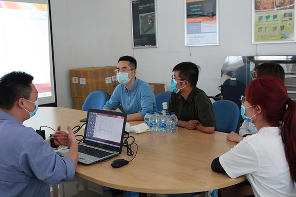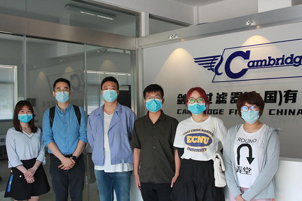 “啄木鸟”安全小卫士与剑桥过滤器(中国)有限公司工程师范品炜(左三)合影