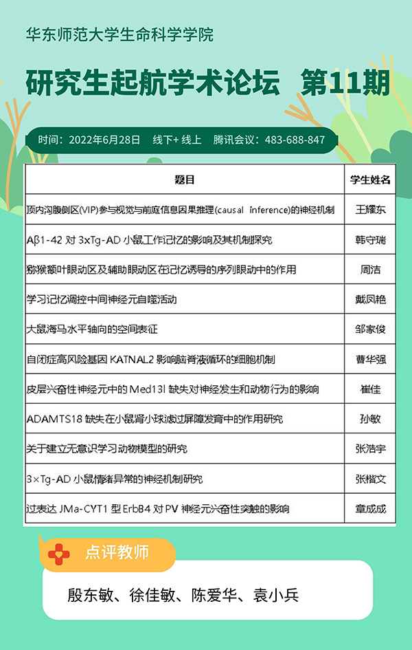 为进一步提高研究生学位论文水平,保证学位论文质量,促进院系间的沟通交流,华东师范大学生命科学学院研究生“起航”学术论坛系列活动不定期举行,第