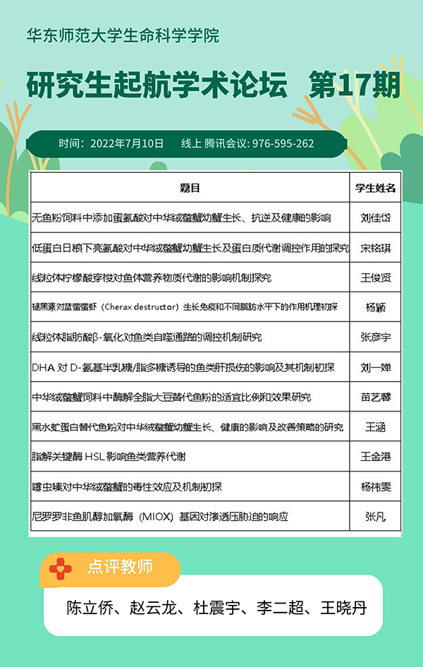 为进一步提高研究生学位论文水平,保证学位论文质量,促进院系间的沟通交流,华东师范大学生命科学学院研究生“起航”学术论坛系列活动不定期举行,第