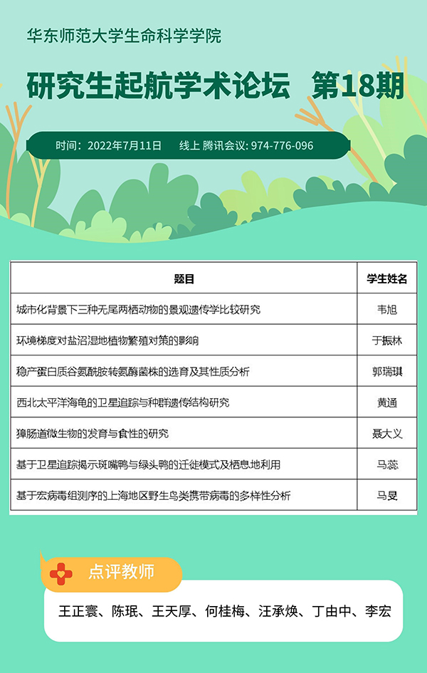 为进一步提高研究生学位论文水平,保证学位论文质量,促进院系间的沟通交流,华东师范大学生命科学学院研究生“起航”学术论坛系列活动不定期举行,第