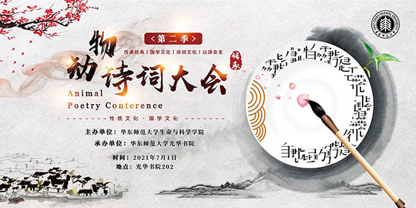 2021年7月1日晚上,在光华书院202举办动物诗词大会,由华东师范大学生命与科学学院主办,由华东师范大学光华书院承办,姜晓东老师和何祝清老师作为指导教师,张子怡辅导员作为主持人,全体生物学专业同学参加。2021年是建党一百周年,7月1日是党的生日,在此时间节点,我们举办动物诗词大会献礼建党百年。