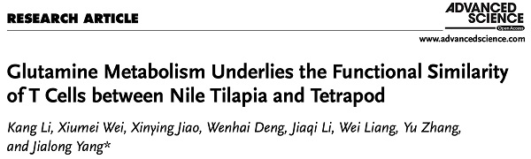 近日,华东师大生命科学学院杨嘉龙团队在Advanced Science上发表了题为Glutamine metabolism underlies the functional similarity of T cells between Nile tilapia and tetrapod的研究论文,揭示了T细胞免疫的进化规律。作者以罗非鱼、非洲爪蟾、鸡、小鼠等动物为研究对象,试图回答两个科学问题:(1)比较基因组层面的T细胞稳定进化假说,是否体现在免疫学过程、功能和调控机制上?(2)维持T细胞免疫稳定进化的潜在驱动力是什么?