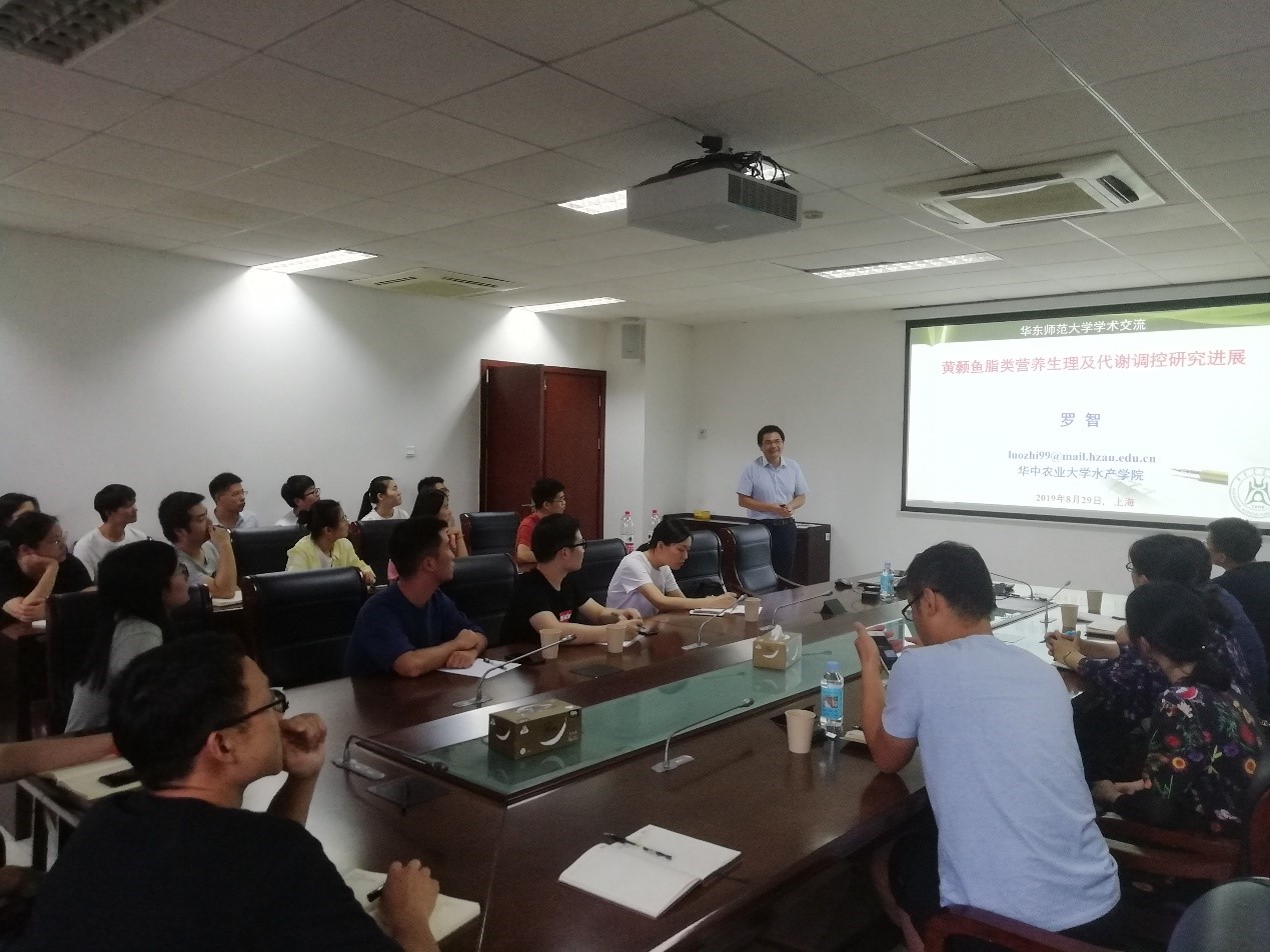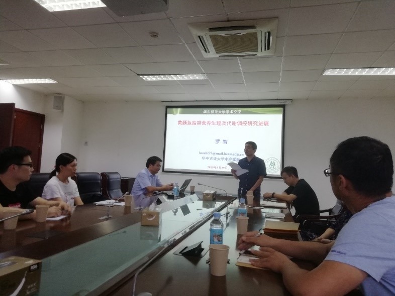2019年8月29日,华中农业大学水产学院罗智教授应邀来我院进行学术交流,并在生命科学学院534小会议室为大家带来了主题为“黄颡鱼脂类营养生理及代谢调控研究进展”的报告。本次报告由我院杜震宇教授主持,动物学科师生到场学习,并与罗老师进行了深入的交流。
