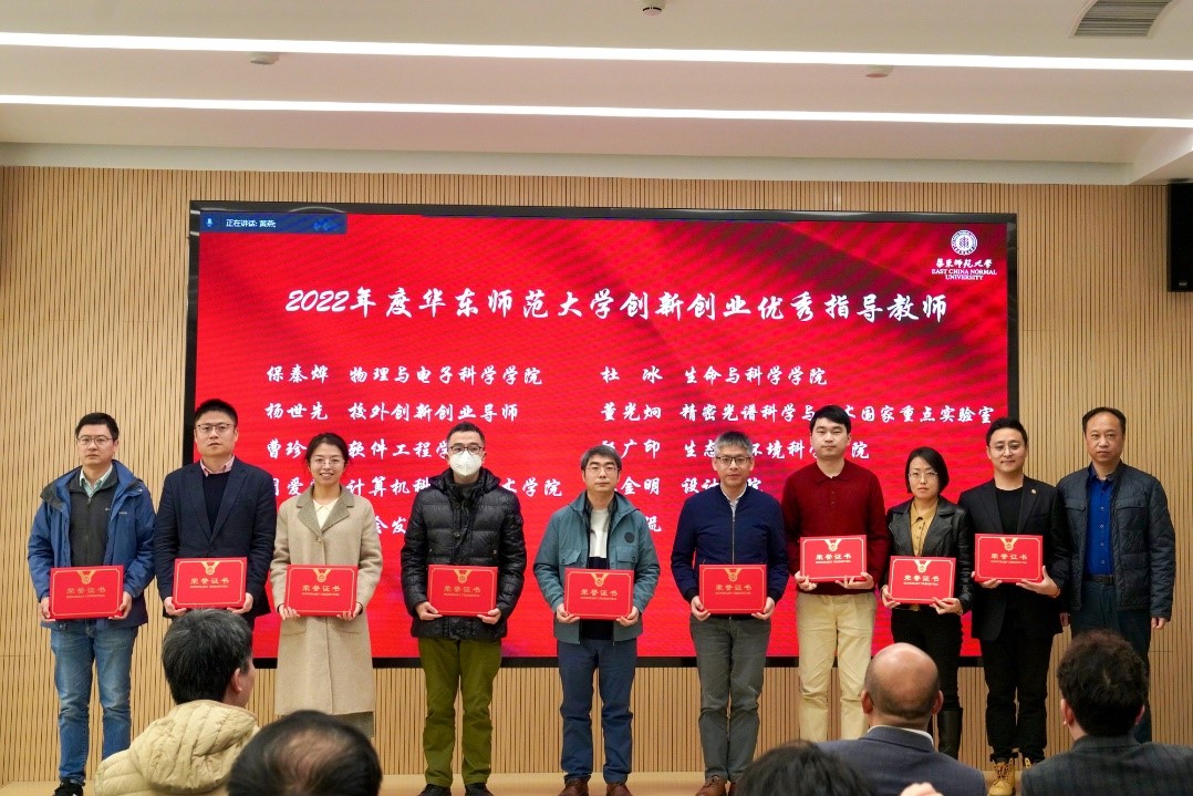 杜冰(左二)获评“2022年度华东师范大学创新创业优秀指导教师”