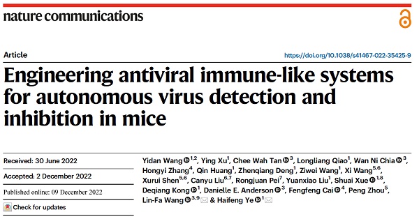12月9日,国际知名期刊《自然·通讯》刊登了华东师范大学叶海峰研究员团队和杜克-新加坡国立大学医学院王林发院士团队,历时8年在抗病毒免疫领域的最新研究成果“Engineering antiviral immune-like systems for autonomous virus detection and inhibition in mice”。