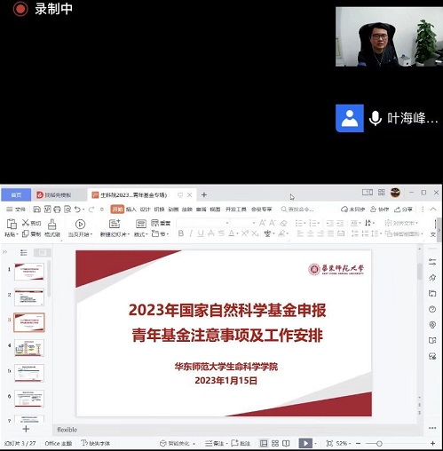 为帮助学院青年科研人员、尤其是博士后老师顺利开展基金申报工作,1月15日生命科学学院召开2023年国家自然科学基金申报青年基金专场动员会,学院党委书记党远鸿、院长翁杰敏出席动员会并作讲话,2022年青年基金获得者、翁杰敏教授课题组博士后康莉及叶海峰教授课题组博士后王义丹应邀进行经验分享,学院科研秘书韩姬介绍青年基金注意事项及2023年基金工作安排,学院青年科研人员、各学科在站博士后近50人参会。会议由学院科研副院长叶海峰主持。