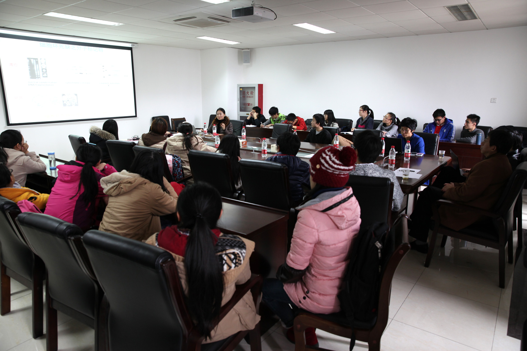 12月23日下午1点,2015级本科菁英班本学期“第二次师生座谈会”在生命科学学院534会议室顺利召开。此次座谈会非常荣幸地邀请到中国科学院上海生命科学研究院生物化学与细胞生物学研究所孙丽明研究员,中国科学院神经科学研究所李澄宇研究员为学生们做学术讲座。学校教务处*谭红岩,赵云龙副院长,辅导员李初旭以及菁英班学生共同参与了此次会议。会议由生命科学学院院长助理禹娜教授主持。