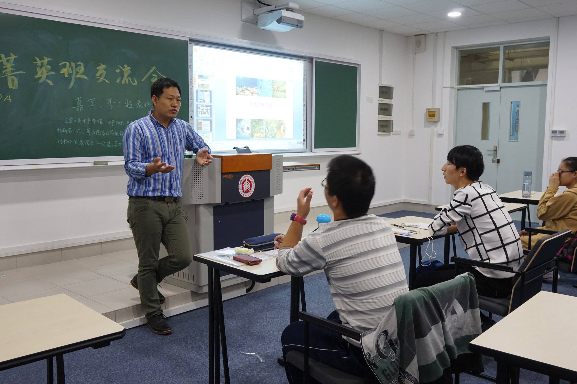 李老师以“动物学科与我”为标题,首先对整个动物学学科组的导师设置及主要研究方向进行了简明的介绍。随后李老师以其从读本科到留学到攻读博士及博士后的求学经历,展示了法国自然历史博物馆、美国农业部、佛罗里达大学等国外研究机构风貌,分享了法国、墨西哥、美国等多国地方文化,同时也以他的切身体会比较了中国与欧洲、美洲大学的体制差异。李老师的讲述生动有趣,引人入胜,整个交流会也洋溢着轻松愉悦的氛围。