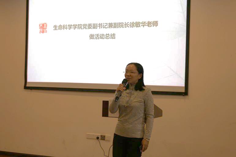 在党的十九大胜利闭幕之际,活动优秀教师党员和结对学生也展开了对十九大的热议。首先,邹春静老师结合生态学教学情况,表明了作为生态学专业的教师,希望和同学们一起为生态文明建设做出贡献的美好愿景。2016级生物科学菁英班王蕴瑞同学也表达了对祖国美好未来的憧憬,希望自己在菁英班这个集体更加优秀,为祖国建设贡献力量。徐敏华副书记代表学院党委作总结发言,她希望并相信受聘的导师们会带着使命感、责任感和荣誉感,在菁英学员的追梦之路上予以指导与帮助;希望菁英班的同学们勤于学习,善于学习,虚心地向导师学做人、学做事、学做学问,不忘初心、努力前行。