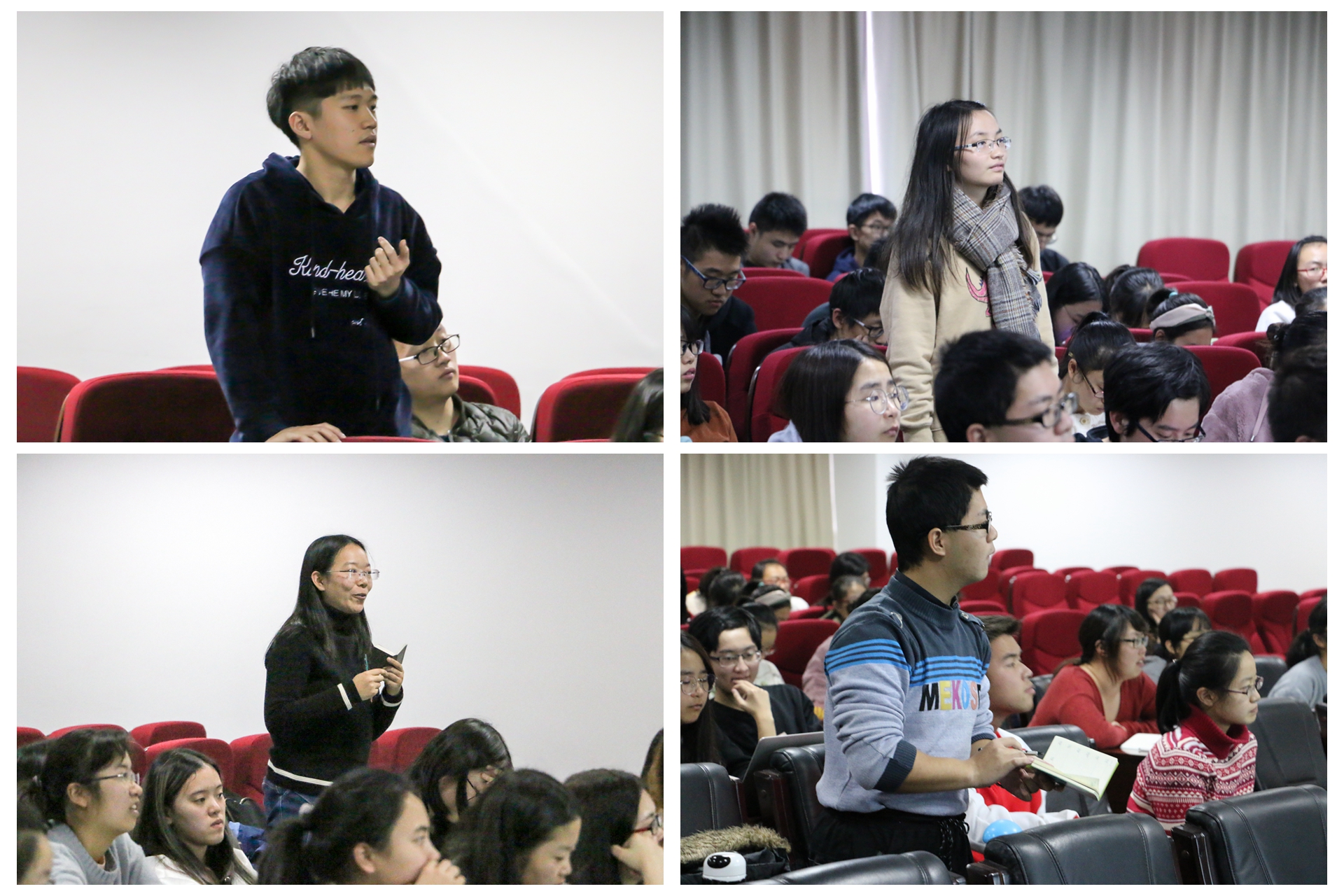 座谈会环节,江文正教授首先就菁英班学生本年度科创开展情况进行了简要总结。2015级同学基本已全部进入实验室,年底将计划开展一次课题汇报,下学期也将面临分流,可以选择去中科院进行科研训练。2016级学生目前已有17位进入实验室。江老师希望同学们能够早日进入实验室熟悉了解科创流程,主动和老师们进行沟通交流,鼓励大家去不同的实验室学习体验。其次,教学方面,座谈会前针对2015、2016两个年级菁英班的同学开展了菁英班专属课程意见建议问卷调查,针对统计好的调查结果老师们给出了相应的反馈答复。就2015级提出的知识点衔接不畅、课程难度大等问题,2016级在学术英语写作、生物统计学、生化等课程提出相关问题,老师们表示一些课程会进行适当地改革;有关体育club打卡制度不合理等公共课问题,教务处胡老师也表示会及时同体院协商,力求将教学质量做的更好。