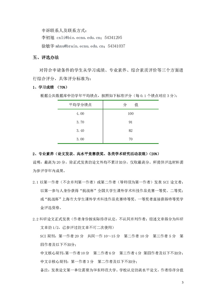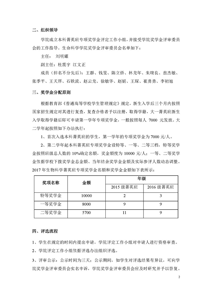 2017年华东师范大学生命科学学院本科菁英班专项奖学金评审细则(公示期:2017.10.16-2017.10.18)