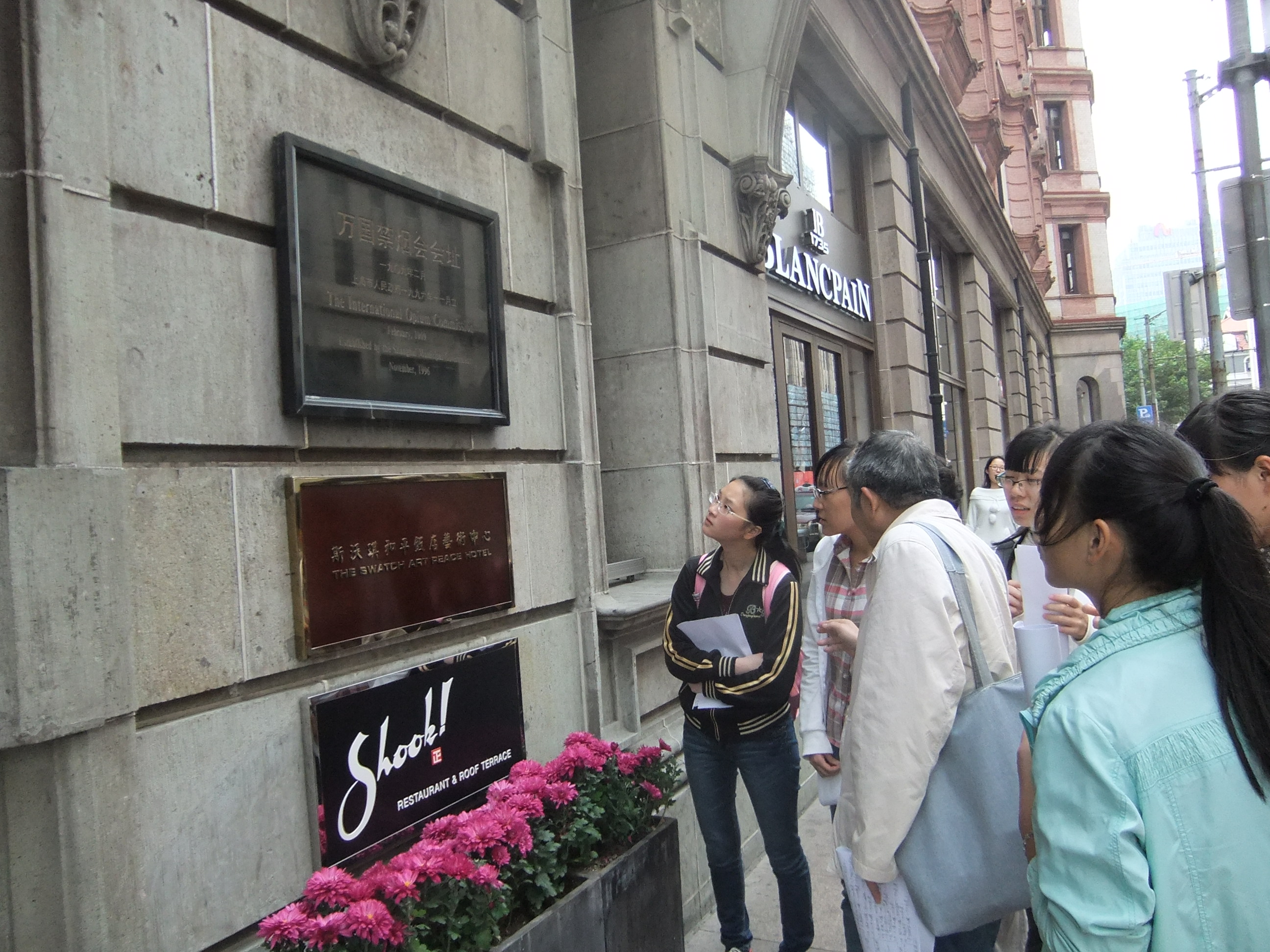 参观出发前黄老师详细地为同学们讲解了上海外滩的历史及其发展过程,并将自己手写的外滩万国建筑群的资料赠与了大家。愉快的午餐之后,在老师的带领下来到了繁华的外滩,从外滩33号依次浏览风格迥然不同的各国建筑并参观了部分特色建筑如和平饭店等,一路下来,黄老师为大家讲解了每栋建筑的特色、历史,分享了畅游外滩的感受。胡榆同学感叹说:“第一次来外滩,看到那些雄壮的建筑,有种特别神圣的感觉。”之后一行人又一起畅游城隍庙,如果说外滩是异国风情,那城隍庙便是正宗的上海味道,和老师们畅游其中,感受到了上海丰富的文化和历史内涵。