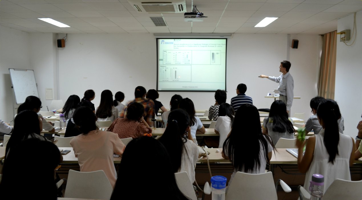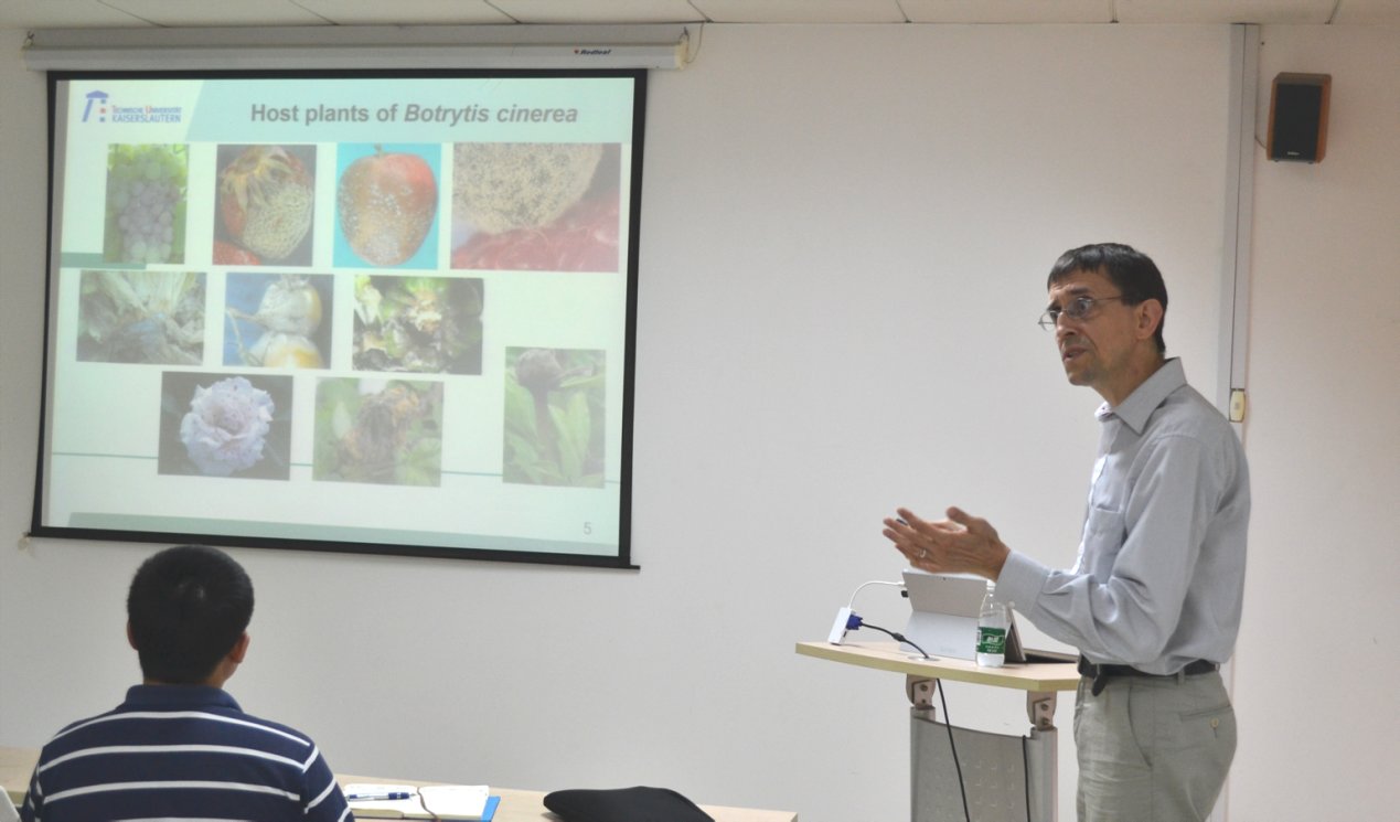 2015年9月9日,德国凯德斯劳滕大学植物病理学教授Matthias Hahn教授与我校生命科学学院师生进行学术交流活动,Hahn教授此次不仅为大家带来了精彩的学术报告,与我院植物学科师生进行了热烈而深入的讨论,同时也向广大师生展现出一位严谨务实的科研工作者应有的精神面貌和工作态度。本次学术交流活动由生命科学学院许玲教授主持,生命科学学院师生参加了本次学术交流活动。