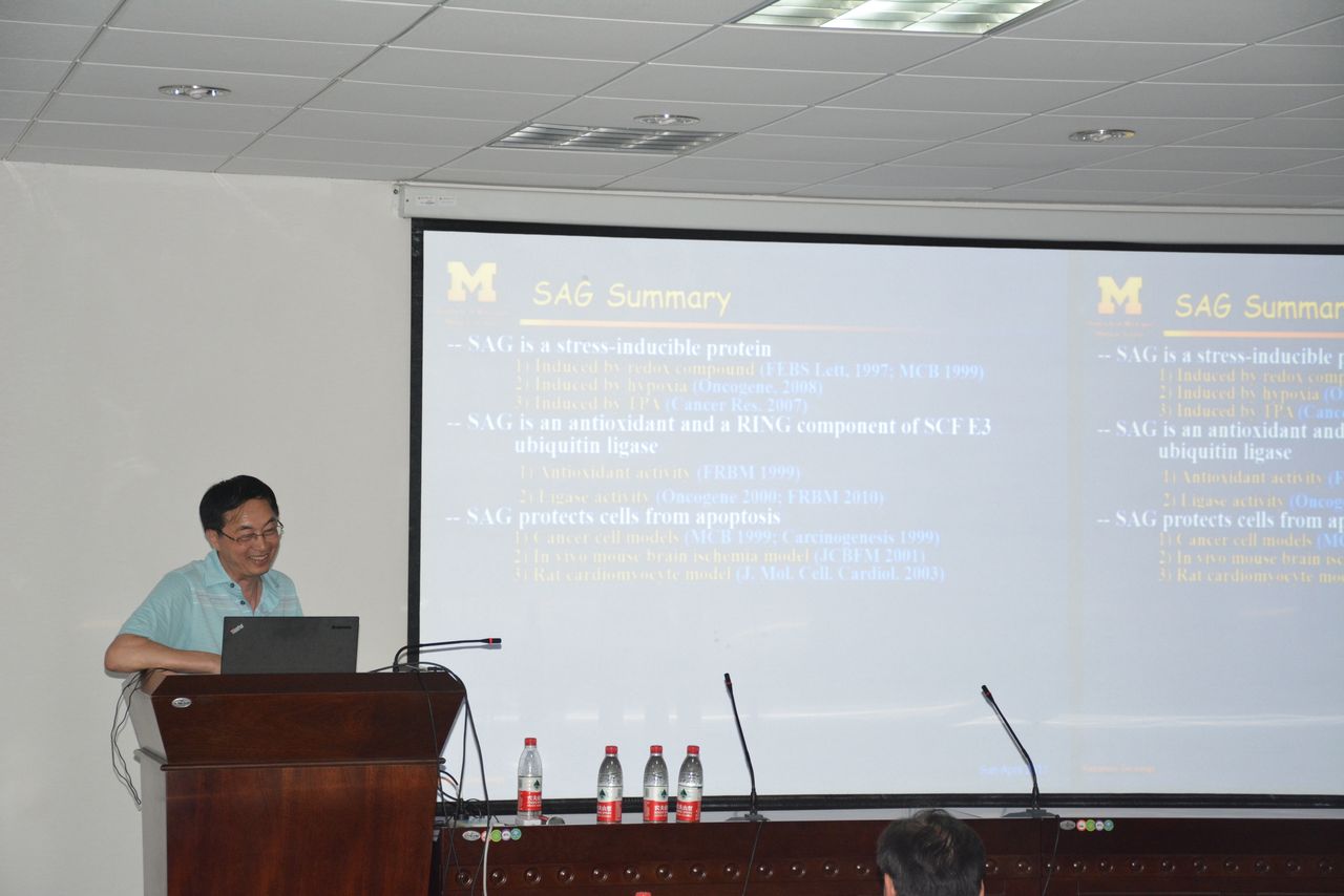 在报告上,孙教授详细介绍了SAG作为CRL(Cullin-RING ligase)E3连接酶催化核心分子的作用,以及SAG在细胞凋亡、肿瘤发生、新生血管形成、干细胞增殖和分化中的关键作用,并与大家分享了其课题组在研究SAG过程中的种种趣事。孙教授是该研究领域的领军者之一,目标是阐明CRL家族E3连接酶的生理功能、作用机制并研发CRL E3连接酶和类泛素化通路的抑制剂,为新药研发奠定基础。
