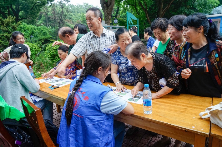 这略有挑战性的游戏着实难倒了许多居民。大家都使出了浑身解数,有疑问时也会向负责同学询问,都得到了相应的解答。但其中也不乏有“大神级”人物,正确率达到了90%!同学们都忍不住为他鼓鼓掌~更有一位居民来进行了二次挑战。居民的热情也感染了工作人员。