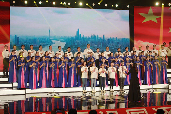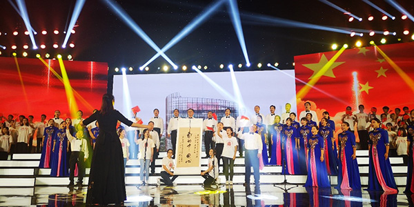 展演中,一个个合唱团唱出了多彩的祖国赞歌,都在饱满热情的歌声献礼祖国,表达对新中国的热爱。而一首特别的合唱《我的中国心》博得满堂喝彩,这是一首由海内外师生共同完成的作品,同时也是生科院教职工合唱团精心排练许久的成果。随着悠扬的伴奏响起,合唱团的每一位成员眼睛里都放出光芒,充满了骄傲和敬仰。“河山只在我梦里/祖国已多年未亲近/可是不管怎样也改变不了我的中国心/洋装虽然穿在身/我心依旧是中国心/......”因为心怀祖国,热爱祖国,每一位教职工都在深情演绎《我的中国心》,曲终,学院常务副院长王群展开 “我的中国心”的卷轴,向祖国母亲表达生科院教职工们的赤子之心,将整首歌曲推向高潮。