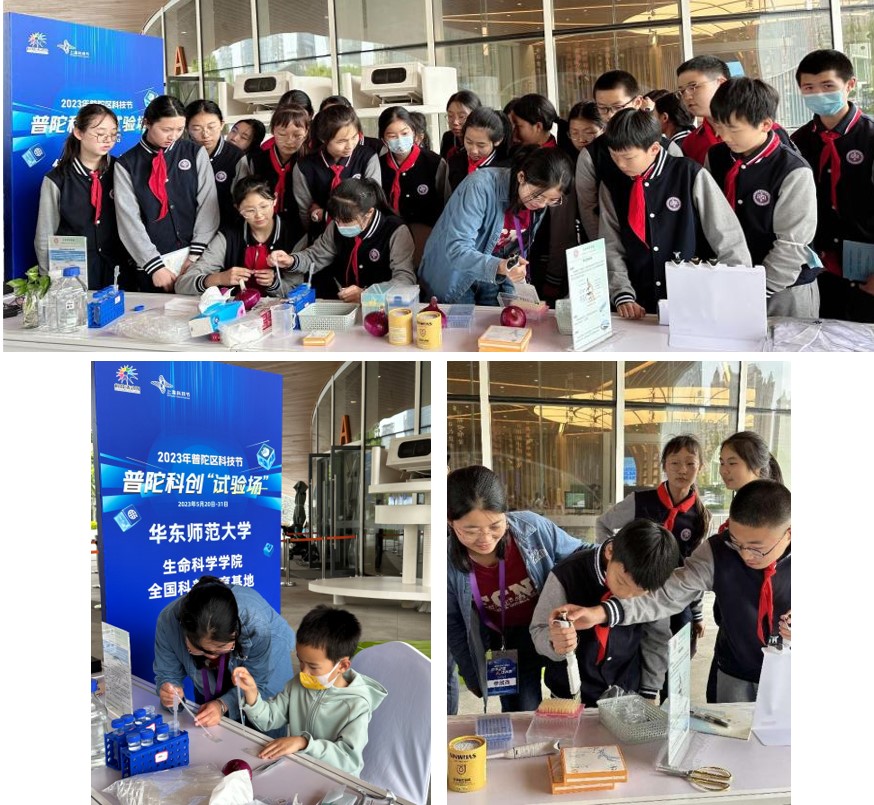 为进一步广泛宣传科技创新成果,开展科学普及惠民活动,2023年上海科技节以“悦享科技 智创未来”为主题拉开帷幕。5月22日,普陀区科技节精彩开幕,华东师范大学生命科学学院全国科普教育基地受邀进行科创“试验场”科普互动展示。