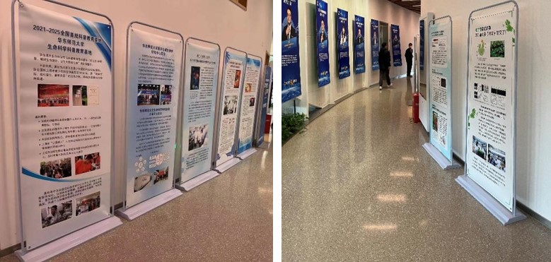 华东师范大学生命科学学院科普教育基地是2021—2025全国首批,也是我校首家全国科普教育基地,本次活动基地展示了学院最新科技成果,包括发表在 Science、Nature、Cell 等顶级期刊上的成果,同时设计了一系列富有互动性、趣味性的实践项目,目的是弘扬科学家精神、传播科学思想、营造爱科学、爱创新的良好社会氛围。