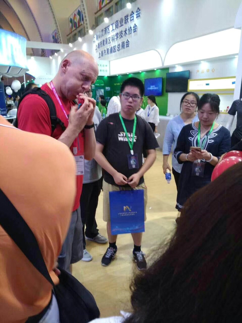 在习近平总书记“科技创新,科学普即是实现创新发展的两翼,要把科学普及放在与科技创新同等重要的位置”的号召下,2017上海国际科普产品博览于2017年8月25日至8月28日在上海展览中心成功举办。此次科学博览会吸引了来自世界10多个国家和地区的350余家科技企业,科技园区,科研机构和高校参与,展品多达3500余件,参观人数预计可达12万人次。科博会的成功举办离不开数以百计的志愿者和主办方幕后工作者的默默付出,我们27名来自华东师范大学的大学生志愿者很荣幸能参与其中,以志愿者的方式为科学普及贡献出一份力量。