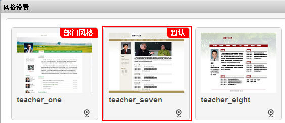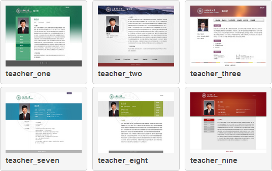系统默认提供10套“教师个人页”的页面风格以供选择,您可根据个人喜好随意选择。