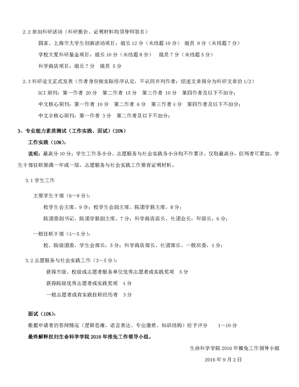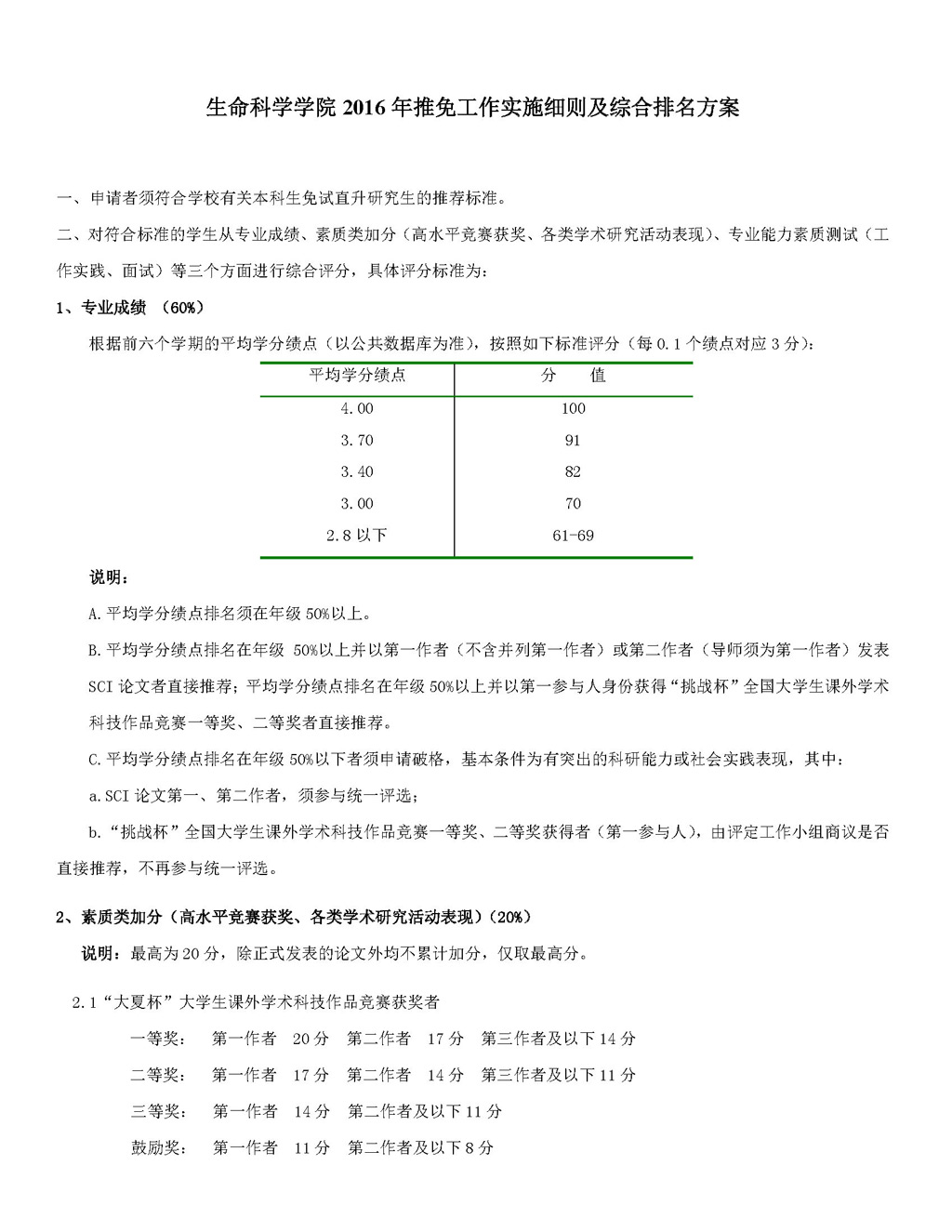生命科学学院2016年推免工作实施细则及综合排名方案公示(9.3-9.5)