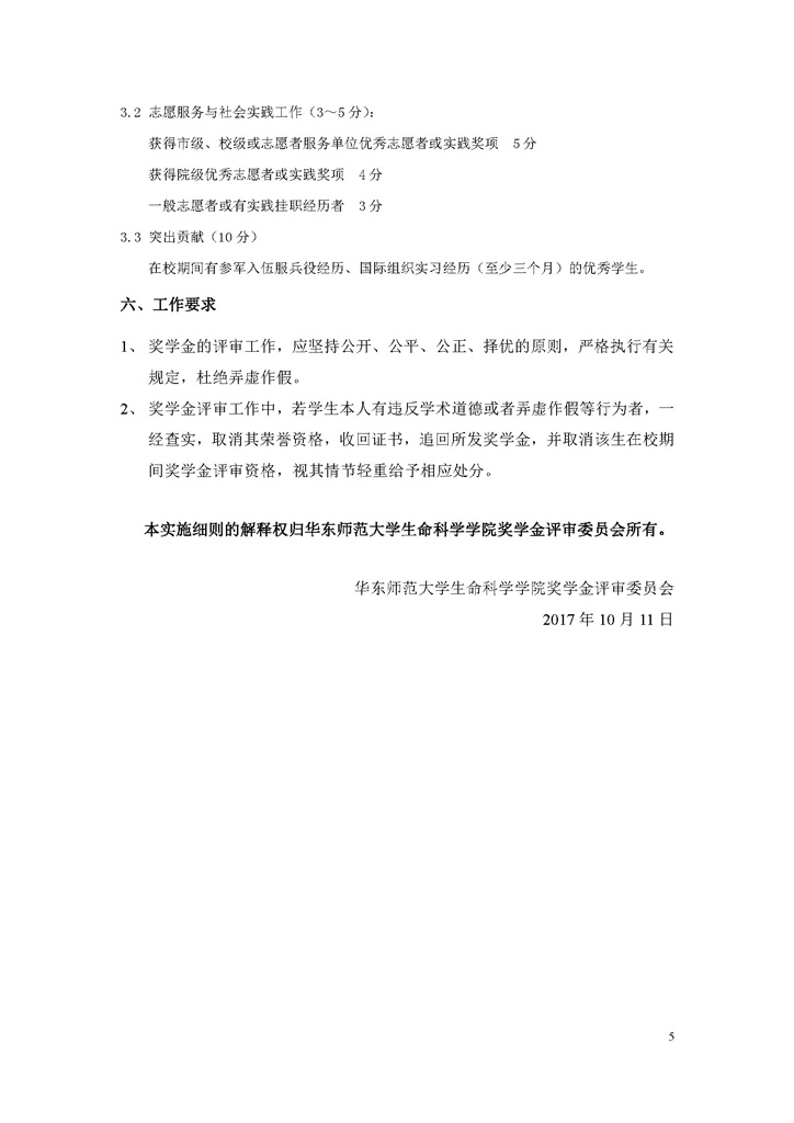2017年华东师范大学生命科学学院本科菁英班专项奖学金评审细则(公示期:2017.10.16-2017.10.18)