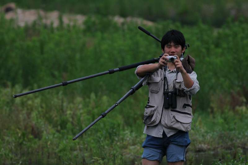 自小就酷爱观鸟的他有着一双敏锐的眼睛,任何从他眼前掠过的鸟儿他都能脱口而出鸟的名字;旁人用望远镜瞅半天都没看到的隐藏在林中的鸟儿,他只需竖起耳朵听鸟鸣,便可知晓鸟种及鸟数。在野外,一个人扛着单筒望远镜、三脚架,蹲着,站着,趴着,静静地等待鸟的出现,一等就是几个小时对他来说是再平常不过的事,那份对鸟的由衷的喜爱也让他对观鸟乐此不疲。当拍到某只不常见的鸟儿或者是鸟儿有趣的行为时,他会兴奋地同自己身边的人分享。也有同行的人笑称他为“鸟痴”。