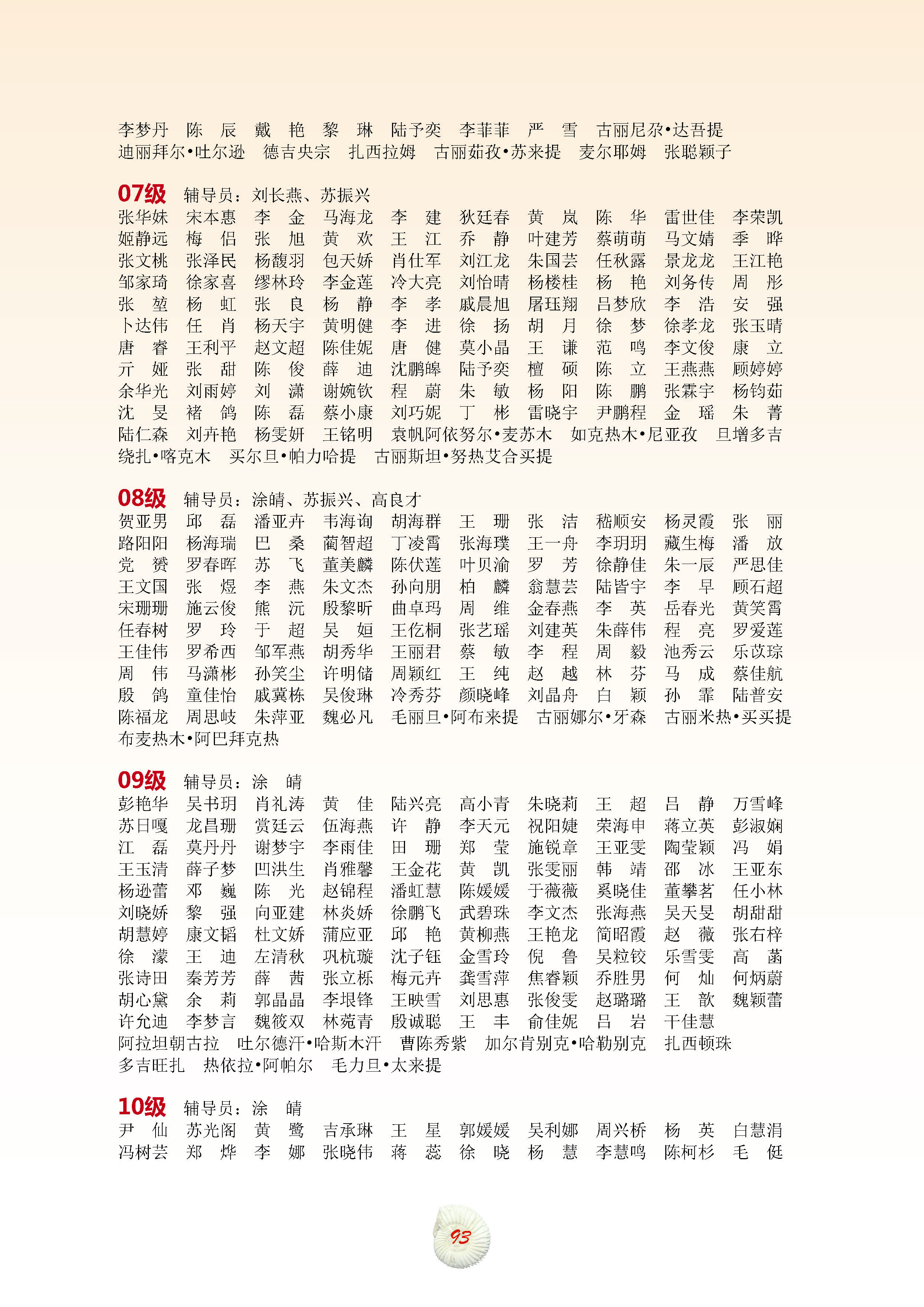 历届本科生名录