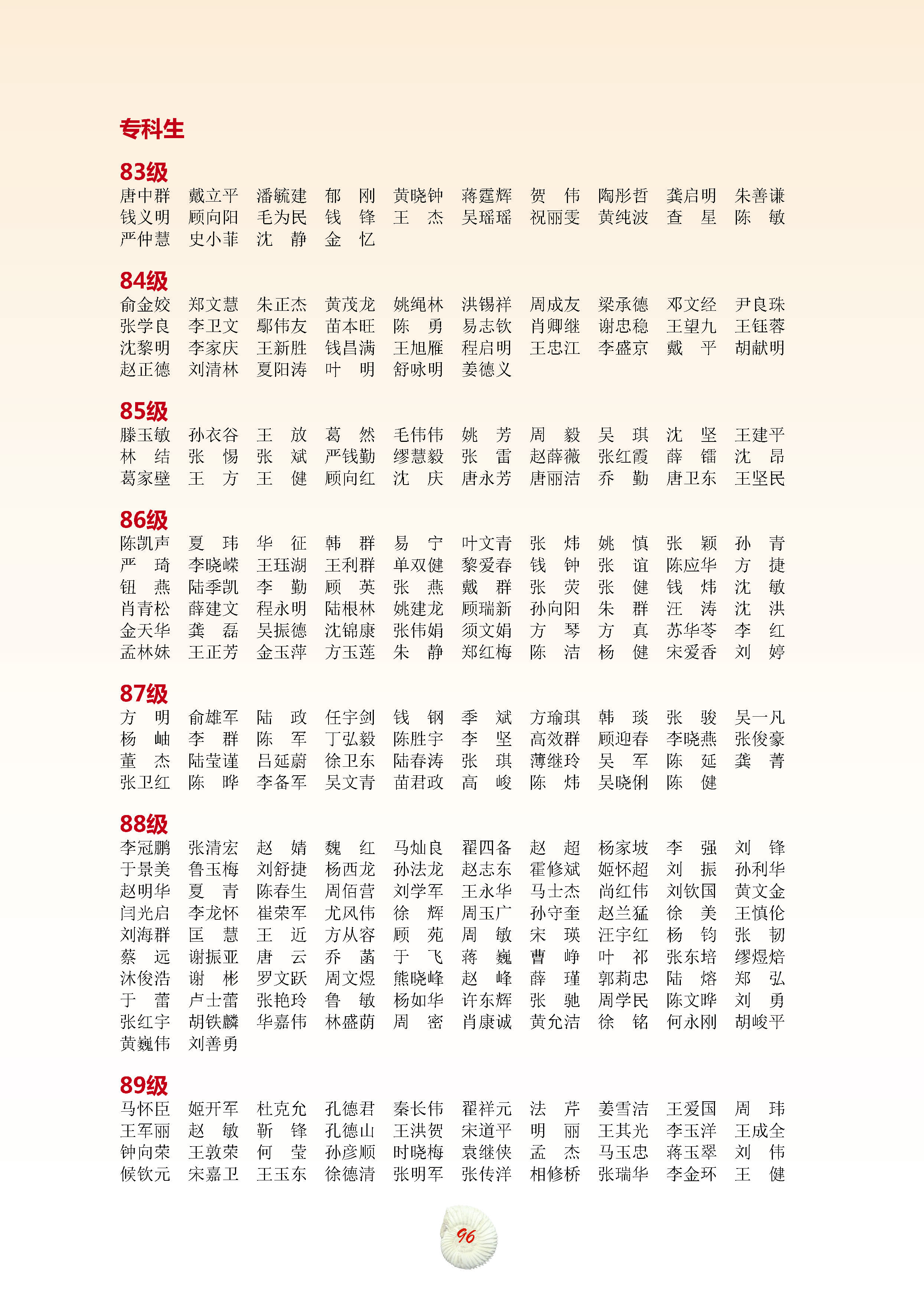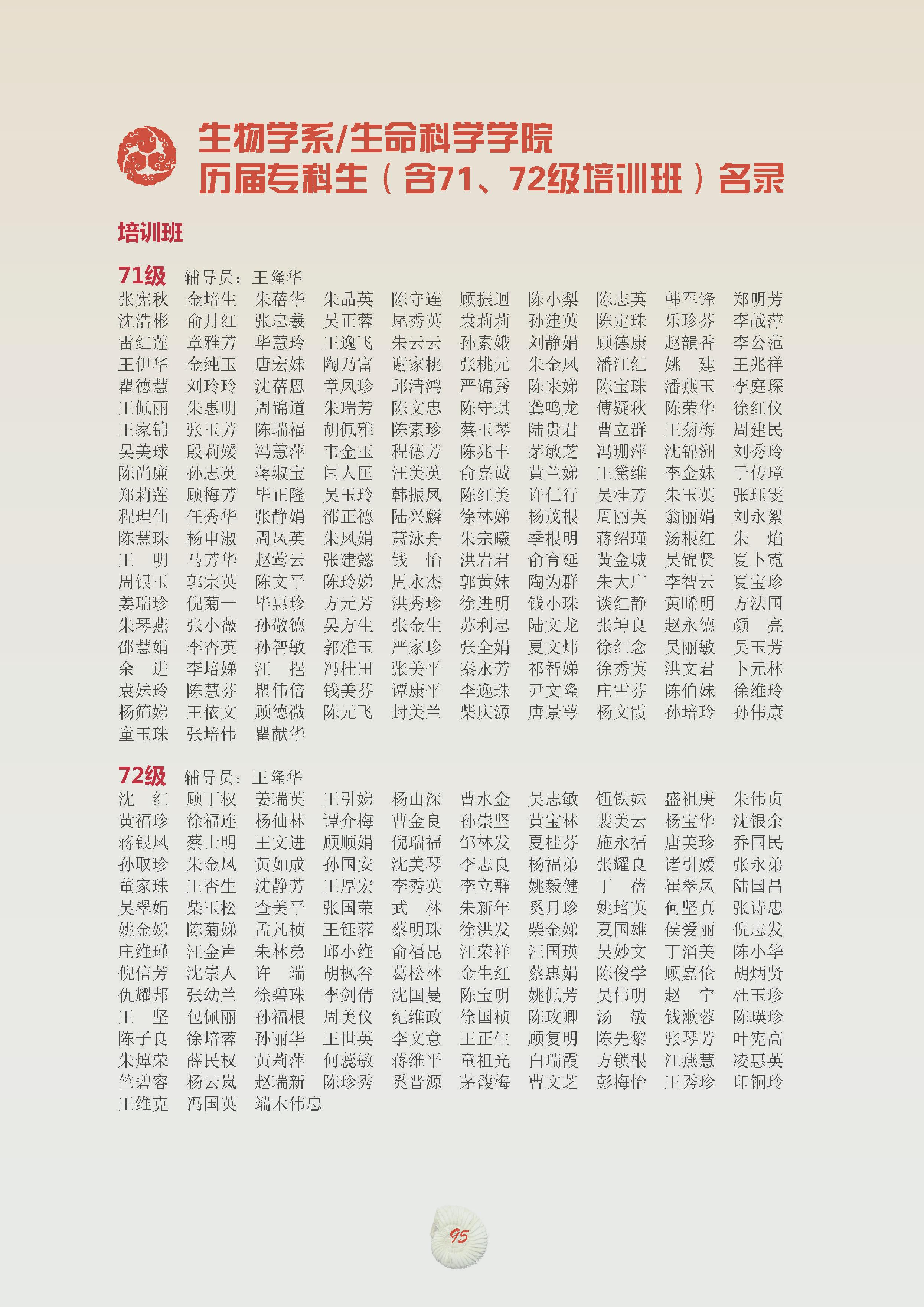 历届专科生(含71、72级培训班)名录