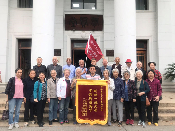 校友日接近尾声,校友为表达母校的热爱和对学院的美好愿景,60级全体同学为生命科学学院赠送了锦旗,祝愿母校及学院“创双一流大学,育创新性英才”。